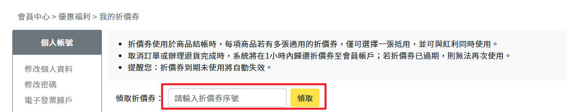 ※ 領取成功後折價券將自動歸戶,可於結帳時使用。