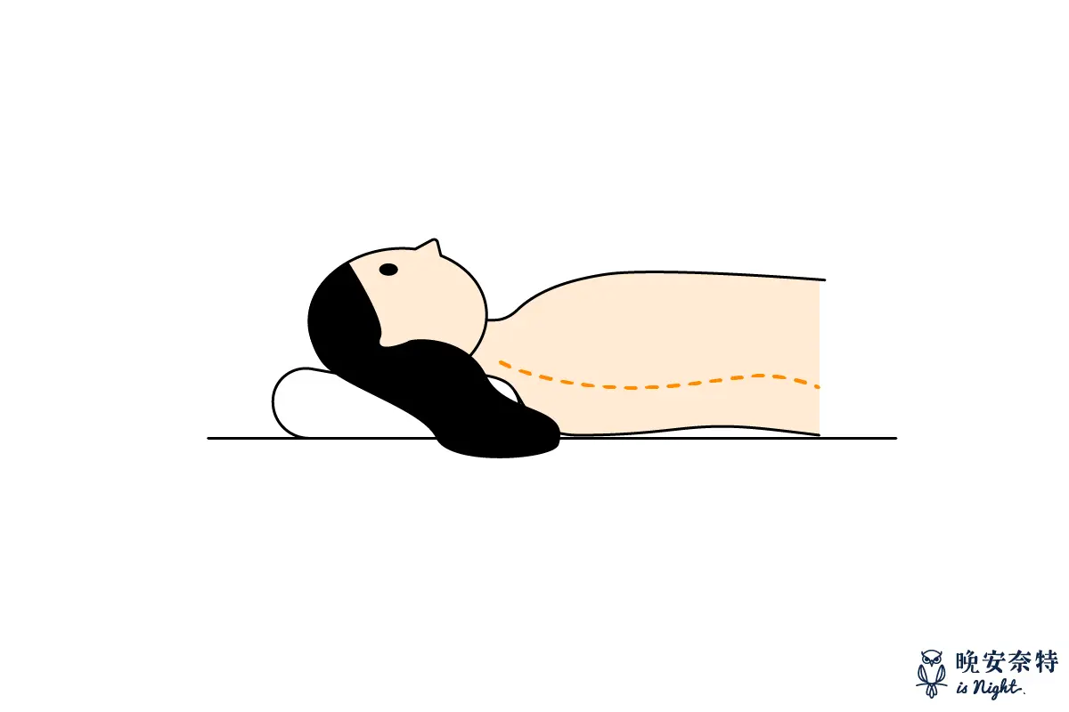 當你正躺在適合的床墊與枕頭上,脊椎與頸椎能維持自然的 S 型曲線,頭部不被枕頭推高或壓低,視線自然落在正上方的天花板。這樣的姿勢,能讓肌肉真正放鬆,也更有利於夜間的修復。